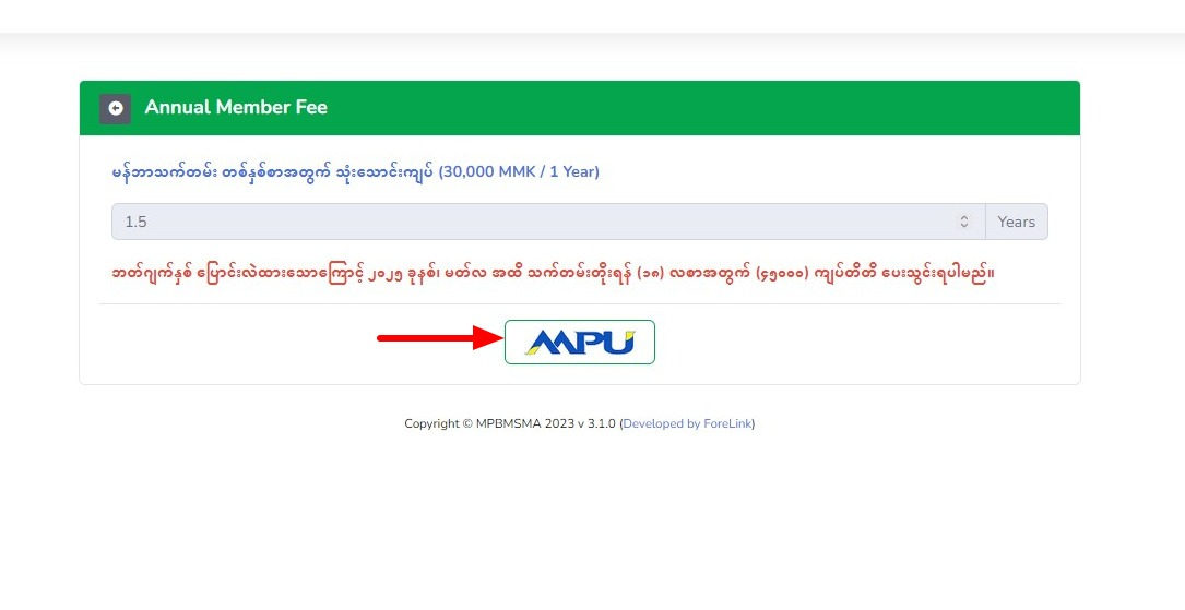 နှစ်စဉ်ကြေးပေးသွင်းရန် MPU ကိုနှိပ်ပါ။
