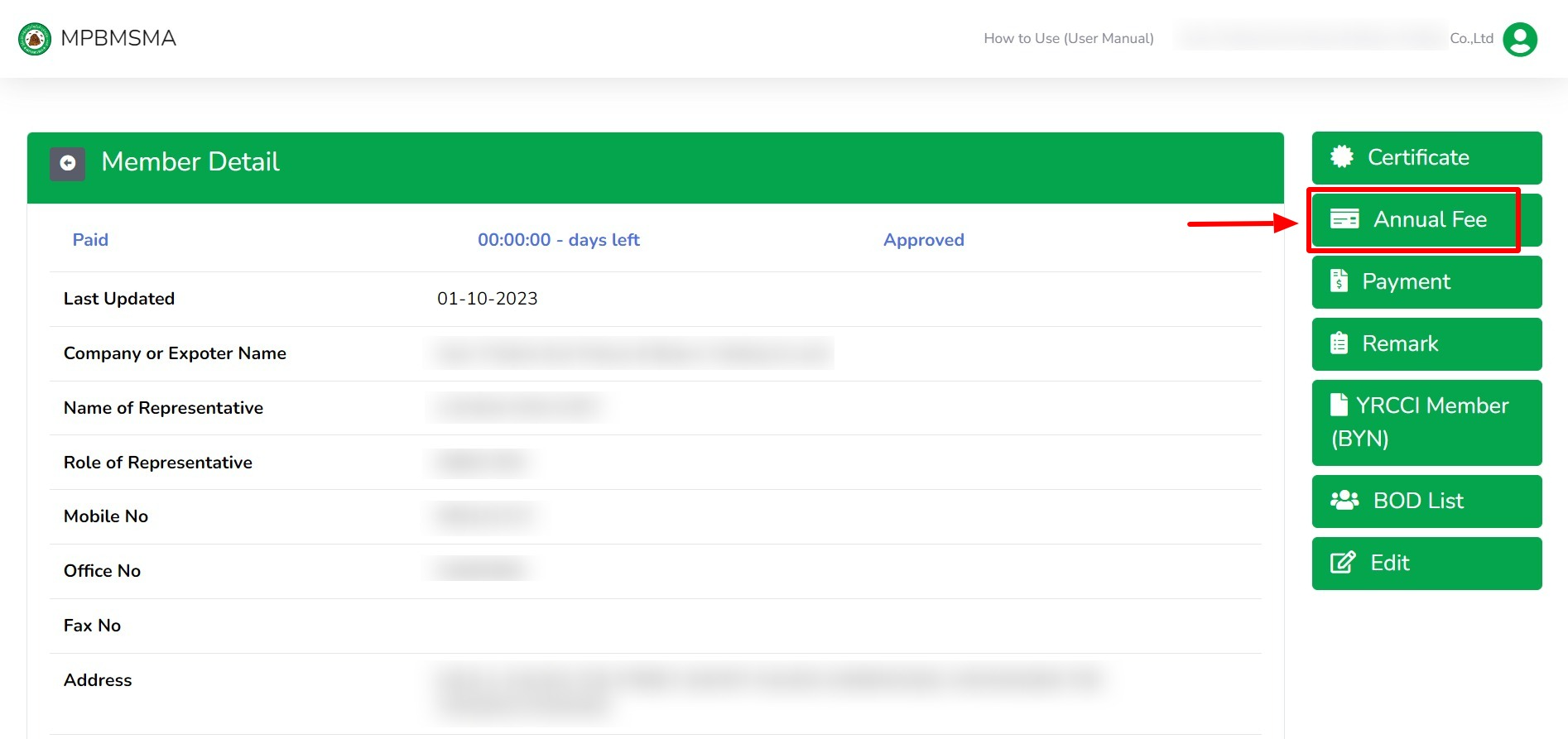 ထို့နောက်ပုံပါအတိုင်း Annual Fee ကိုနှိပ်ရပါမည်။